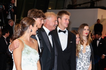 J - Descente des marches du film « Horizon : An american saga » lors du 77ème Festival International du Film de Cannes (Kevin Costner et ses enfants, Annie, Hayes Logan, Cayden Wyatt, Grace Avery et Lily)