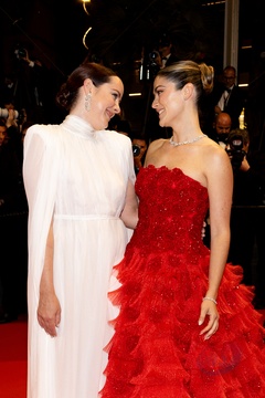 M - Descente des marches du film « Horizon : An american saga » lors du 77ème Festival International du Film de Cannes (Isabelle Fuhrman, Georgia MacPhail)