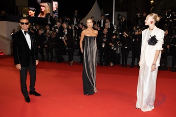 M - Montée des marches du film « The Substance » lors du 77ème Festival International du Film de Cannes (Omar Harfouch (Habillé en Saint-Laurent), Rosie Huntington-Whiteley)