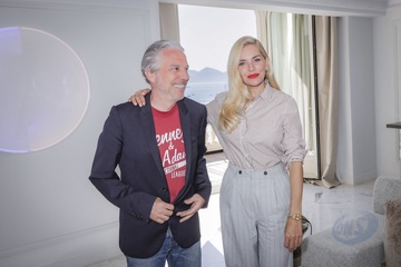 Sienna Miller podczas wywiadu Philippe'a Vandela wyemitowanego 20 maja w France Info TV z 77. Międzynarodowego Festiwalu Filmowego w Cannes 5