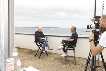 Renaud Le Van Kim podczas wywiadu kulturalnego z Philippe'em Vandelem dla Franceinfo (emisja 21 maja) podczas 77. Międzynarodowego Festiwalu Filmowego w Cannes 21