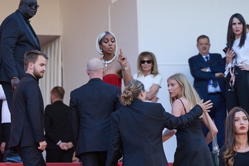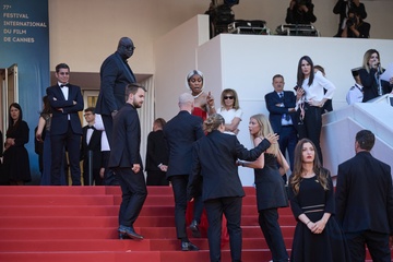 M - Kelly Rowland et les agents de la sécurité lors de la montée des marches du film « Marcello Mio » lors du 77ème Festival International du Film de Cannes (Kelly Rowland)