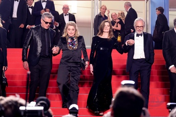 M - Descente des marches du film «Marcello Mio » lors du 77ème Festival International du Film de Cannes
