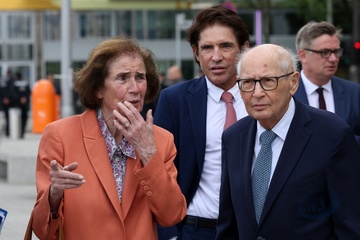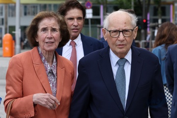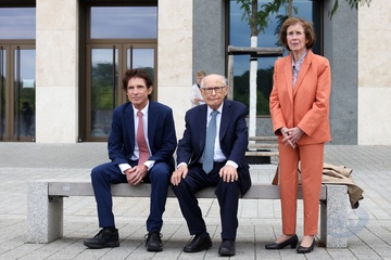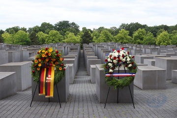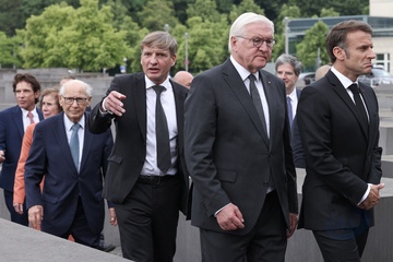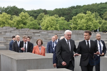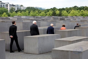 Le président français, Emmanuel Macron et la première dame, Brigitte Macron, Franck-Walter Steinmeier, président de la république fédérale d'Allemagne et madame Elke Budenbender, au Mémorial de l’Holocauste à Berlin