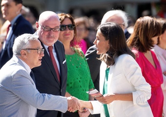 La reine Letizia d'Espagne lors de l'inauguration de la 83ème édition de la Foire du livre de Madrid, au parc du Retiro à Madrid