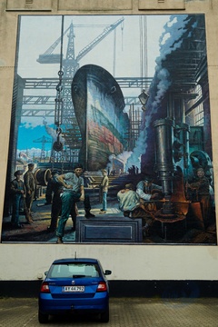 Helsingor, Zeeland, Denmark, - Time of the Shipyard (2013) Street Art gadekunst
