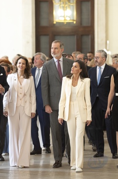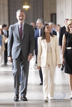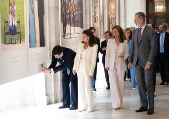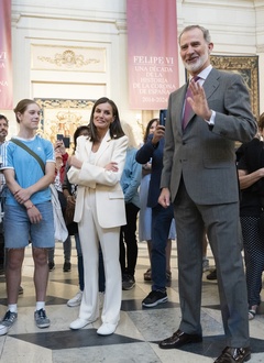 Le roi Felipe VI et la reine Letizia d’Espagne, inaugurent l'exposition "Felipe VI 2014 - 2024. Une décennie d'histoire de la Couronne d'Espagne" au Palais Royal à Madrid