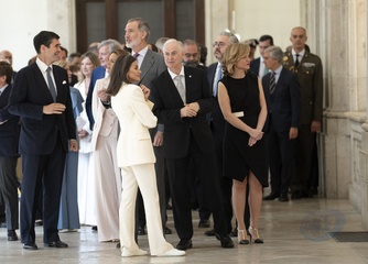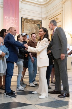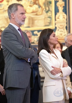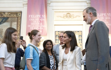 Król Hiszpanii Filip VI i królowa Letycja inaugurują wystawę „Felipe VI 2014 - 2024. Dekada historii Korony Hiszpanii” w Pałacu Królewskim w Madrycie 33