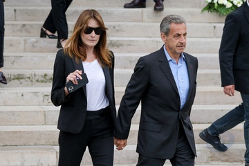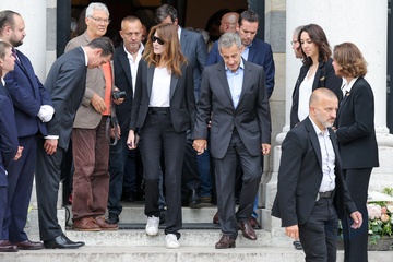 Nicolas Sarkozy Carla Bruni Wyjście z pogrzebu Françoise Hardy na cmentarzu Père-Lachaise w Paryżu” 69