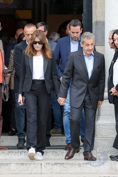 Sortie des obsèques de Françoise Hardy au cimetière du Père-Lachaise à Paris (Nicolas Sarkozy et sa femme Carla Bruni)