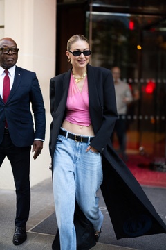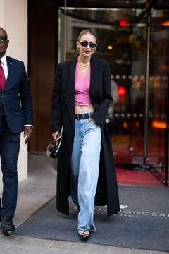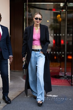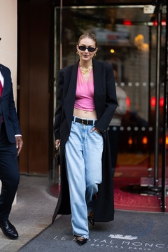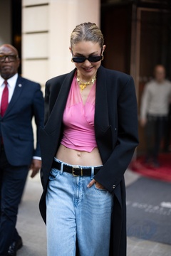 Gigi Hadid à la sortie de son hôtel le Royal Monceau à Paris