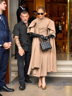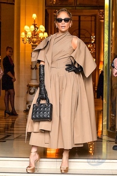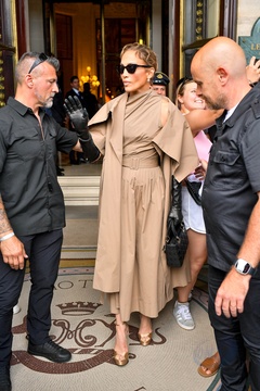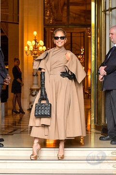 Jennifer Lopez (J.Lo) opuszcza hotel Le Meurice, aby udać się na pokaz Christiana Diora podczas Tygodnia Mody w Paryżu