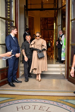 Jennifer Lopez (J.Lo) à la sortie de l'hôtel Le Meurice pour se rendre au défilé Christian Dior lors de la Fashion Week de Paris