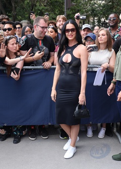 Katy Perry signe des autographes et fait des selfies avec ses fans à la sortie de son hôtel lors de la Fashion Week de Paris