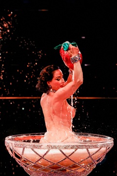 Dita Von Teese zamyka pokaz mody Alexis Mabille Haute-Couture jesień-zima 2024/2025 podczas Tygodnia Mody w Paryżu