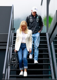 Corinna Schumacher et Lewis Hamilton arrivent pour aux essais pour le Grand Prix d'Autriche à Spielberg (Corinna Schumacher)