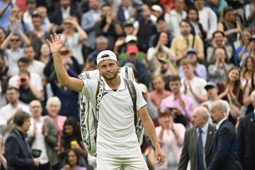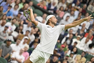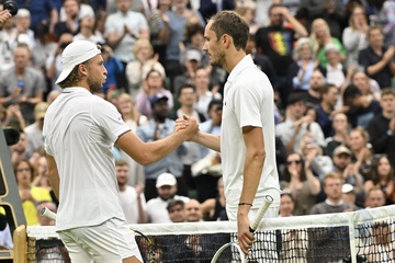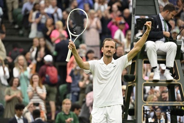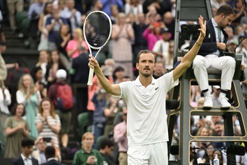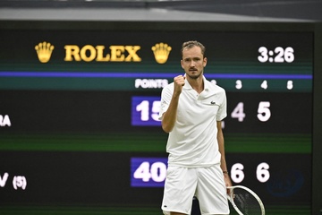 Daniił Miedwiediew pałkał Alexandre Muller 6/7(3), 7/6(4), 6/4, 7/5 w turniejach Wimbledonu w Londynie