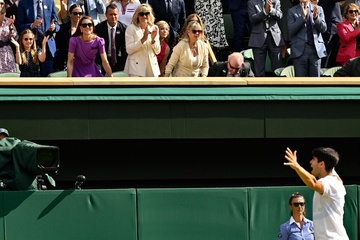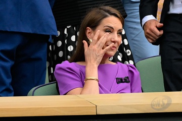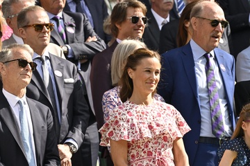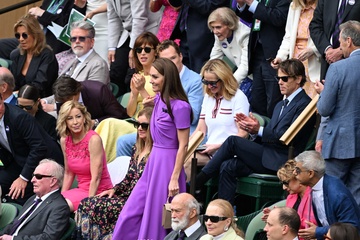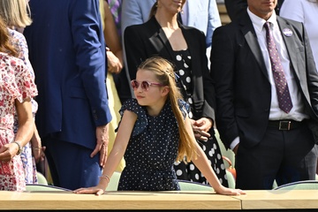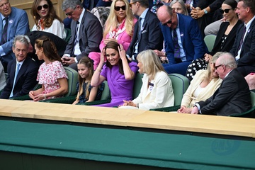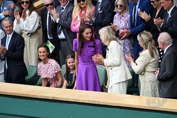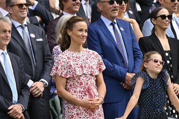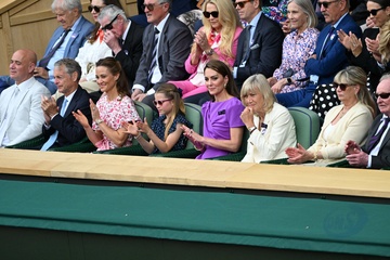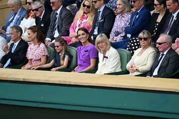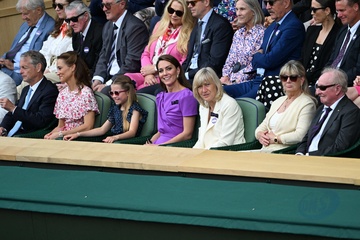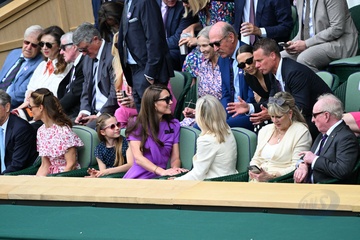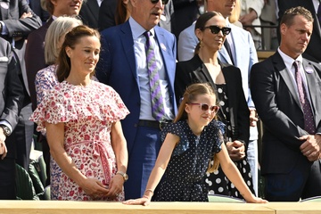 Catherine (Kate) Middleton z księżniczką Charlotte i Pippą Middleton na trybunach finału turnieju Wimbledonu 2024