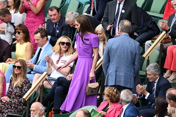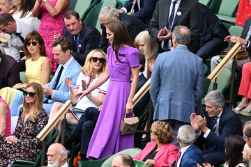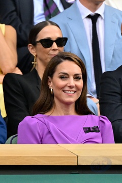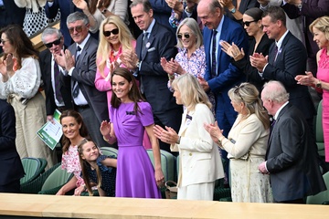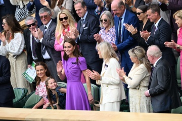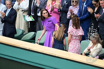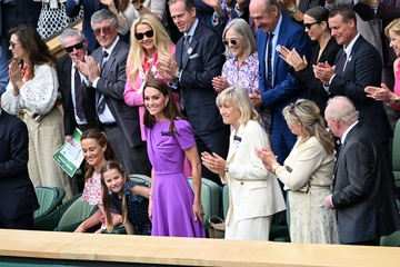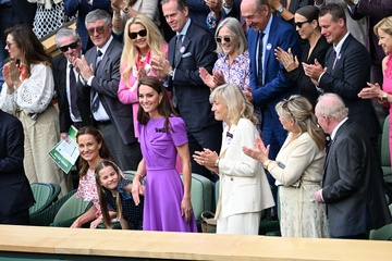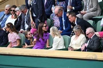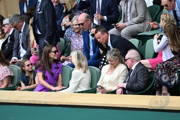 Catherine (Kate) Middleton avec la princesse Charlotte et Pippa Middleton dans les tribunes de la finale du tournoi de Wimbledon 2024