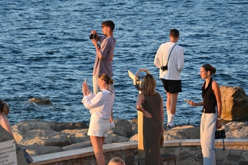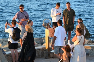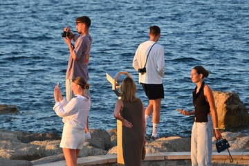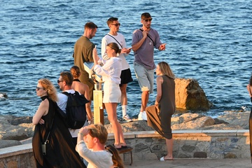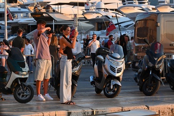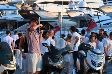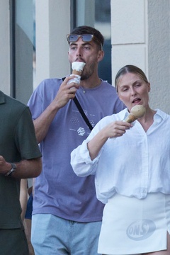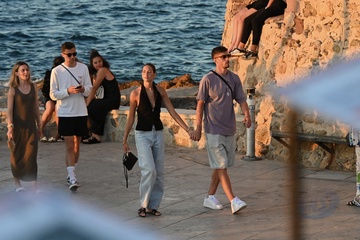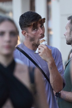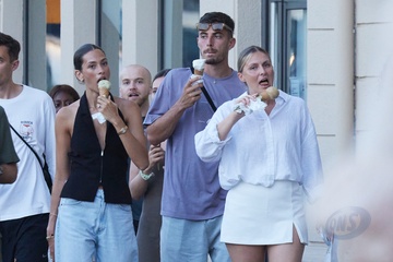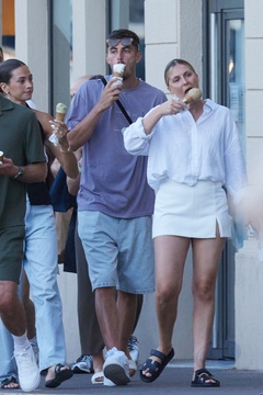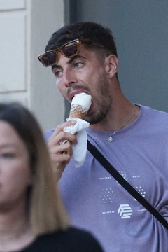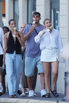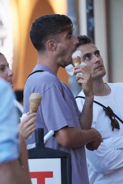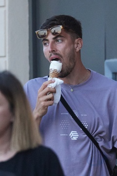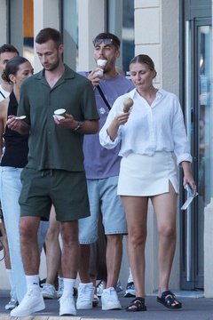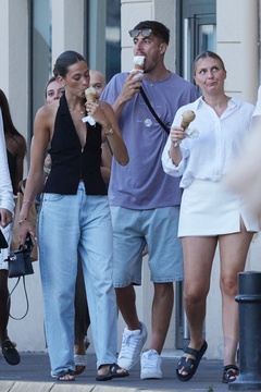 Kai Havertz i jego partnerka Sofia Weber jedzą lody podczas spaceru z przyjaciółmi po porcie Saint-Tropez