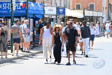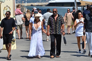 Steve Harvey z żoną Marjorie Bridges z dziećmi Wyntonem, Lori Harvey i Broderick Harvey Jr. wybierają się na rodzinny spacer ulicami Saint-Tropez 33