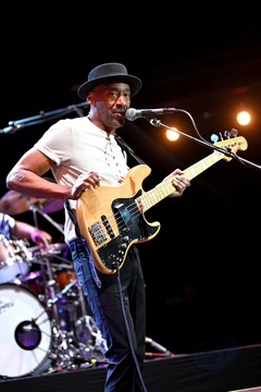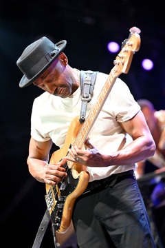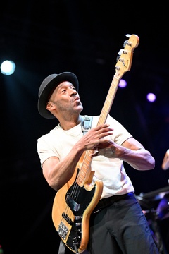 Marcus Miller, basista, amerykański kompozytor i aranżer, koncertował na scenie Pinède Gould podczas 63. edycji Jazz à Juan