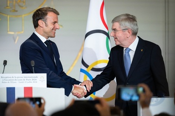 Reception de la presse internationale à l'Elysée, a l'occasion des Jeux de Paris 2024 (Emmanuel Macron Thomas Bach)