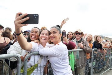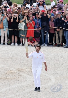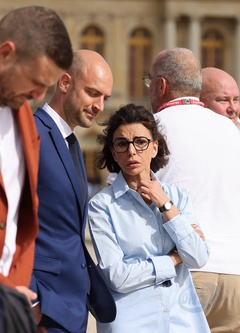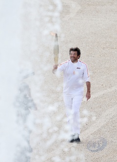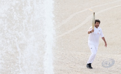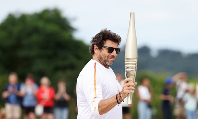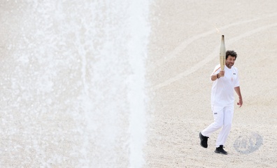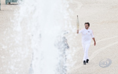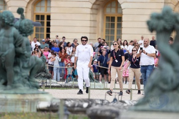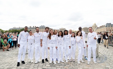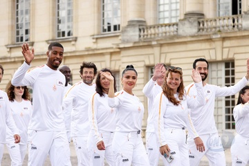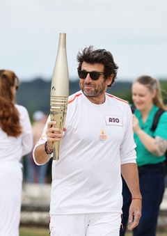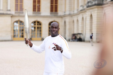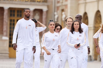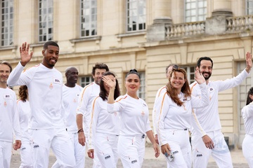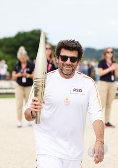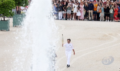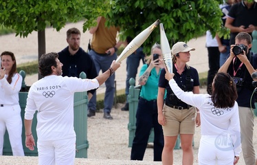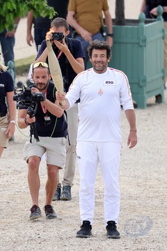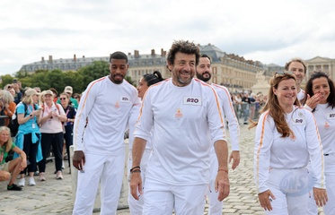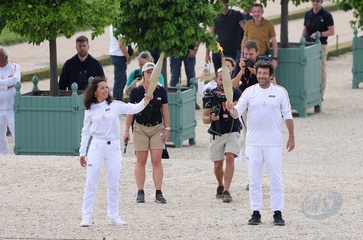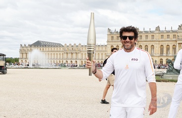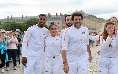 Salma Hayek et Patrick Bruel portent la flamme olympique des Jeux Olympiques de Paris 2024 (JO) au château de Versailles