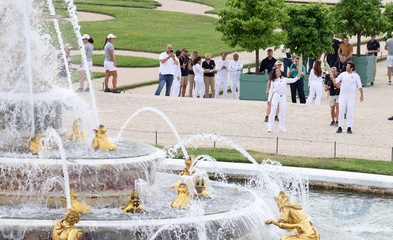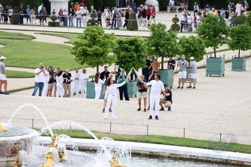 Salma Hayek i Patrick Bruel niosą znicz olimpijski na Igrzyska Olimpijskie w Paryżu w 2024 r. (OG) w Pałacu Wersalskim 75