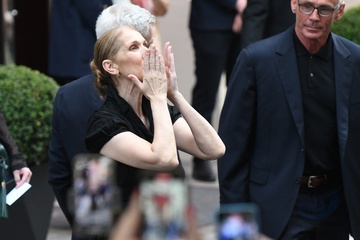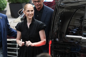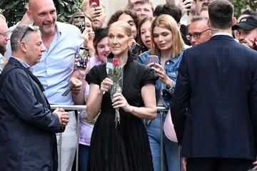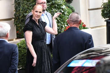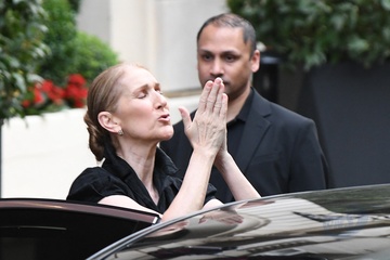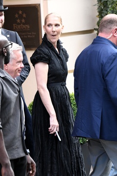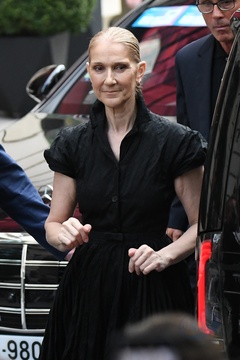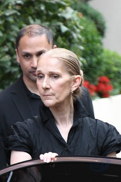 Céline Dion à la sortie de l'hôtel Royal Monceau à Paris avant l'ouverture des Jeux Olympiques (JO) de Paris 2024