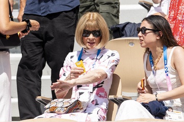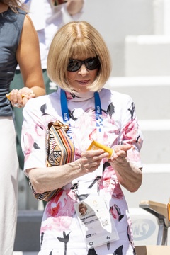 Anna Wintour uczestniczy w zawodach tenisa kobiecego podczas Igrzysk Olimpijskich w Paryżu w 2024 r. (OG) na stadionie Roland Garros