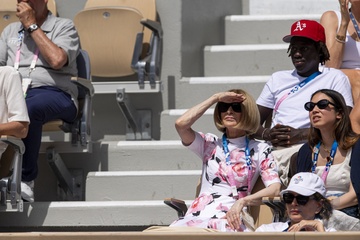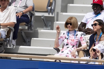 Anna Wintour assiste à une épreuve de tennis féminin lors des Jeux Olympiques de Paris 2024 (JO) à Roland Garros