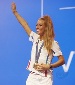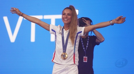Pauline Ferrand-Prévot, złoty medal w kolarstwie górskim, w Club France podczas Igrzysk Olimpijskich Paryż 2024
