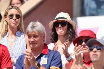 Xisca Perello soutient son mari Rafael Nadal pendant l'épreuve de tennis lors des Jeux Olympiques de Paris 2024 (JO) à Roland Garros