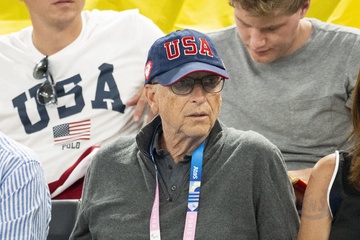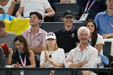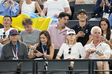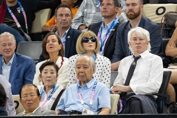 Les célébrités assistent aux épreuve de gymnastique artistique lors des Jeux Olympiques de Paris 2024 (JO) au Palais omnisports Bercy Arena