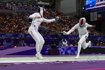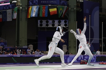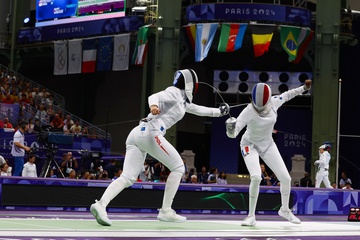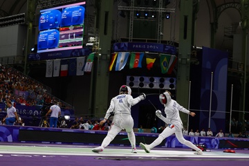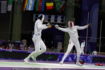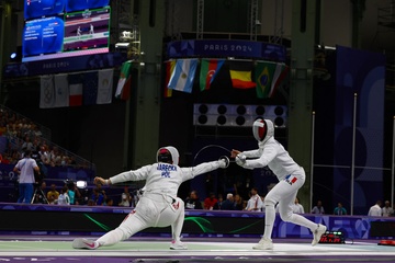 Epreuve d’Escrime par équipe femme à l'épée lors des Jeux Olympiques de Paris 2024 (JO) au Grand Palais