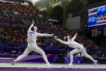 JARECKA Aleksandra brązowy medal Zawody w szermierce drużynowej kobiet w szpadzie podczas Igrzysk Olimpijskich w Paryżu w 2024 r. (OG) w Grand Palais 9