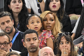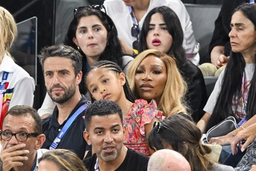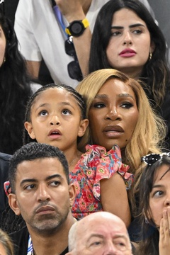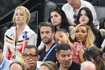 Célébrités assistent aux épreuves de gymnastique lors des Jeux Olympiques de Paris 2024 (JO) au Palais omnisports Bercy Arena, à Paris (Nadia Comăneci, Tony Estanguet , Serena Williams)