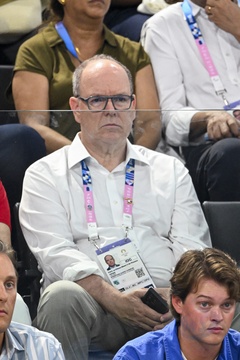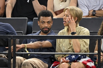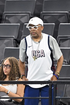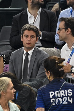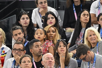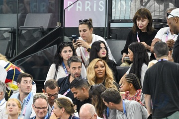 Célébrités assistent aux épreuves de gymnastique lors des Jeux Olympiques de Paris 2024 (JO) au Palais omnisports Bercy Arena, à Paris