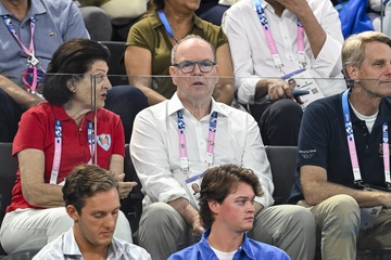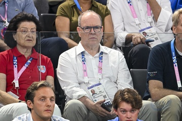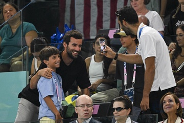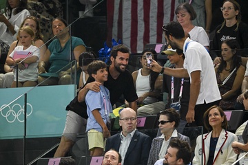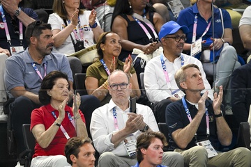 Célébrités assistent aux épreuves de gymnastique lors des Jeux Olympiques de Paris 2024 (JO) au Palais omnisports Bercy Arena, à Paris (Youri Djorkaeff)