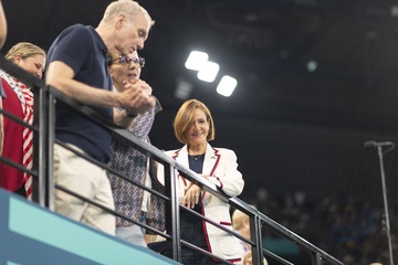 Célébrités assistent aux épreuves de gymnastique lors des Jeux Olympiques de Paris 2024 (JO) au Palais omnisports Bercy Arena, à Paris (Nadia Comăneci)