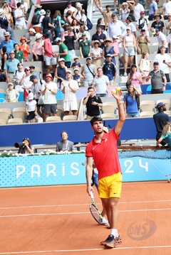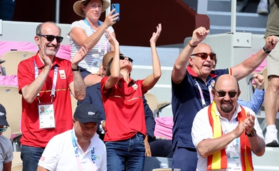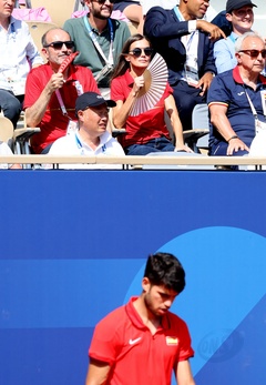 Hiszpańska królowa Letizia uczestniczy w ćwierćfinale tenisa pomiędzy Carlosem Alcarazem i Tommym Paulem podczas Igrzysk Olimpijskich 2024 w Paryżu (OG) na stadionie Roland Garros 38