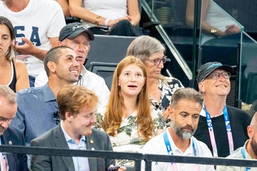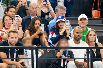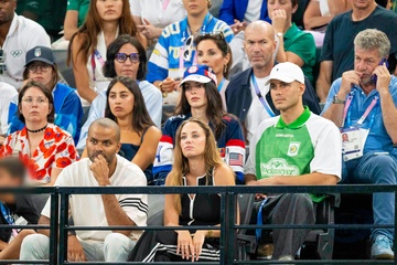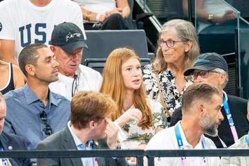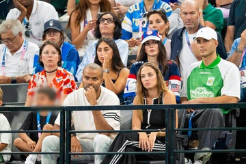 Les célébrités assistent aux épreuves de Gymnastique artistique féminine, finale du concours général lors des Jeux Olympiques de Paris 2024 (JO) au Palais omnisports Bercy Arena