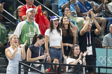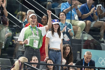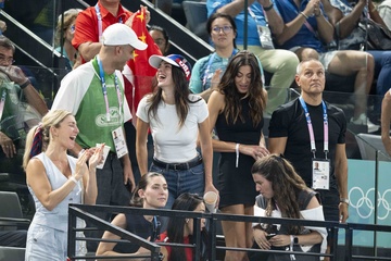 Fai Khadra, Kendall Jenner, Sarah Staudinger i jej partner Ariel Emanuel – biorą udział w wszechstronnym finale gimnastyki artystycznej kobiet na Igrzyskach Olimpijskich w Paryżu w 2024 r. 17