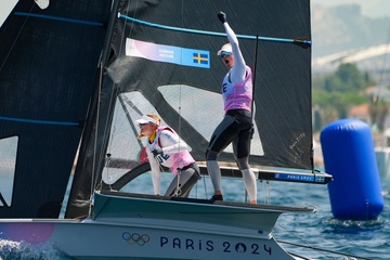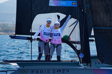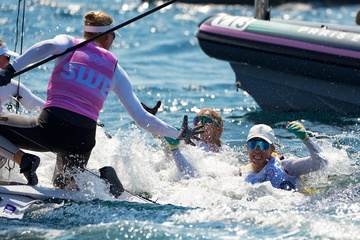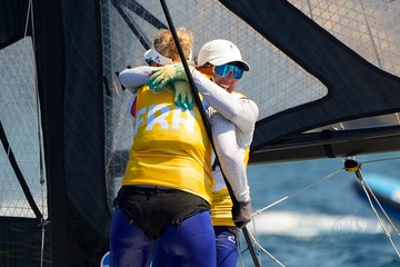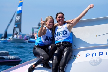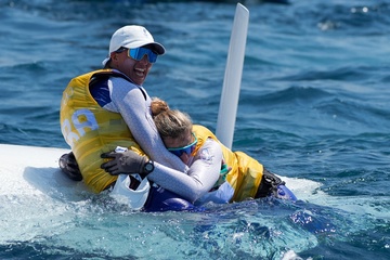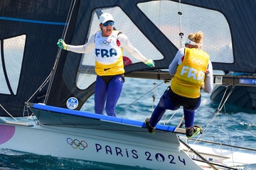 Sarah Steyaert et Charline Picon décrochent le bronze en épreuve de voile 49er FX lors des Jeux Olympiques de Paris 2024 (JO) à la marina de Marseille 21