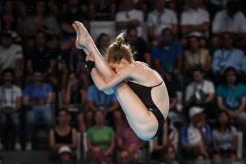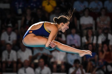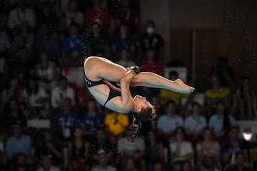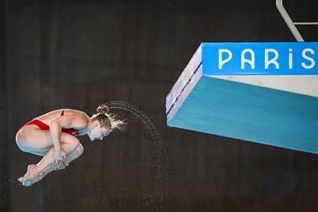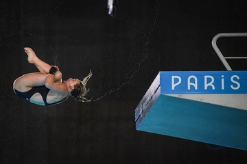 Epreuve de plongeon haut vol 10 m femmes lors des Jeux Olympiques de Paris 2024 (JO) au Centre Aquatique de Saint-Denis