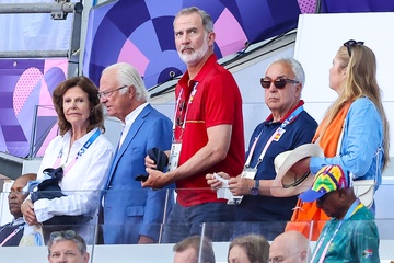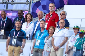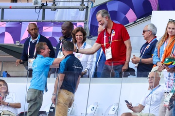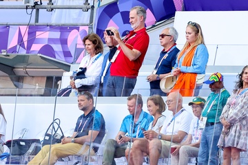 Król Karol XVI Gustaw, królowa Sylwia, król Felipe VI, księżniczka Catharina-Amalia i wielki książę Henryk Luksemburga biorą udział w zawodach lekkoatletycznych podczas Igrzysk Olimpijskich w Paryżu w 2024 r. (OG) na Stade France 12
