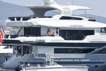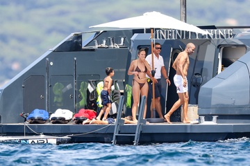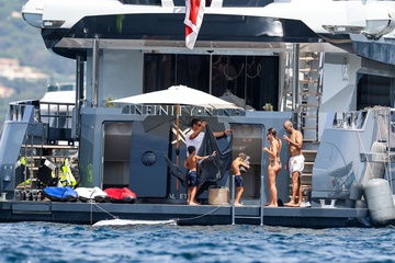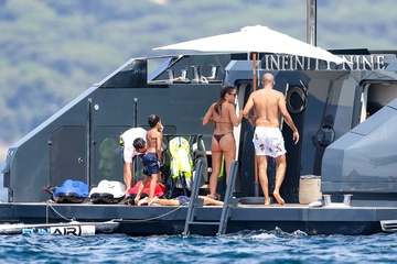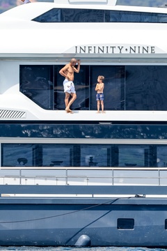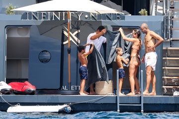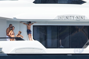 Tony Parker ze swoją partnerką Agathe Teyssier i dziećmi na wakacjach na swoim jachcie Infinity Nine w Zatoce Saint-Tropez 92