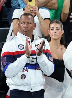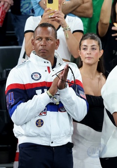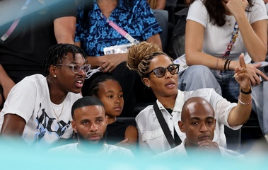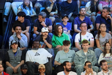 Célébrités assistent au match de basket entre les Etats-Unis et le Brésil (122-87) lors des Jeux Olympiques de Paris2024 (JO)