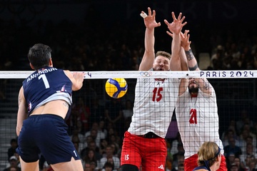 Półfinałowy mecz siatkówki pomiędzy Stanami Zjednoczonymi a Polską podczas Igrzysk Olimpijskich Paryż 2024 (OG) na stadionie Arena Paris Sud